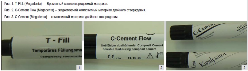 выполняется целый ряд манипуляций, имеющих огромное значение для окончательного результата. С момента начала использования адгезивных технологий для фиксации непрямых реставраций, произошли значительные изменения в рестав-рационном лечении и усовершенствовании методик, базирующихся на самых последних достижениях в стоматологии. Одним из важнейших этапов, является непосредственно фиксация непрямой реставрации, которая осуществляется с помощью композитного материала двойного отверждения. Для этой цели очень хорошо подходят фиксирующие материалы C-Cement и C-Cement flow, которые выпускаются компанией MEGADENTA. C-Cement является композитным материалом двойного отверждения – благодаря такой комбинации можно ускорить процесс отверждения материала с помощью светодиодной лампы. C-Cement состоит из 2 шприцов (база и катализатор), которые при замешивании 1:1 дают реакцию полимеризации. Материал не изменяет цвета зуба и реставрации и поэтому может быть использован для выполнения эстетической фиксации реставрационной работы. Материал C-Cement flow – это жидкотекучий композитный цемент, также обладающий свойством двойного отверждения. Благодаря двойной конструкции шприца процесс замешивания базы и катализатора упрощается, улучшается качество смешивания и становится возможным прямое нанесение в полость или на конструкцию. C-Cement flow также