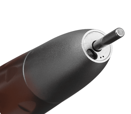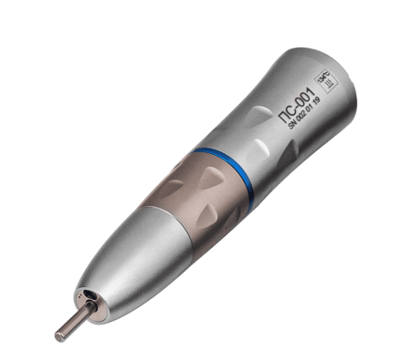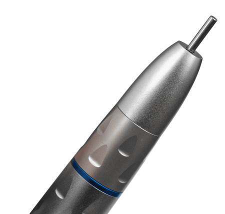 Работает от воздушного или электрического микромотора за счет передачи крутящего момента от вала микромотора к ротору головки наконечника. Имеет передаточное число 1:1 и обеспечивает скорость вращения до 40 000 об/мин. Рабочие инструменты фиксируются цанговым зажимом.