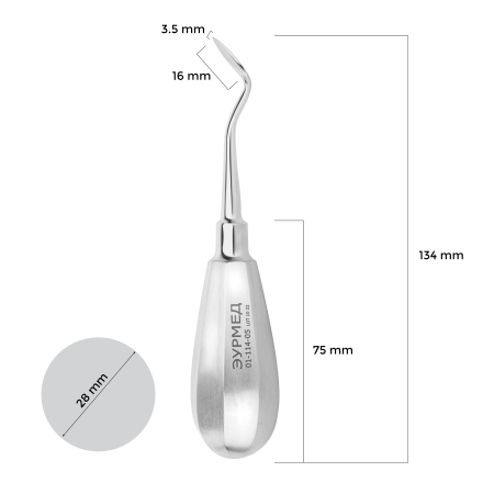 Элеватор Флор, изогнутый, правый, заостренный, 3.5 мм
