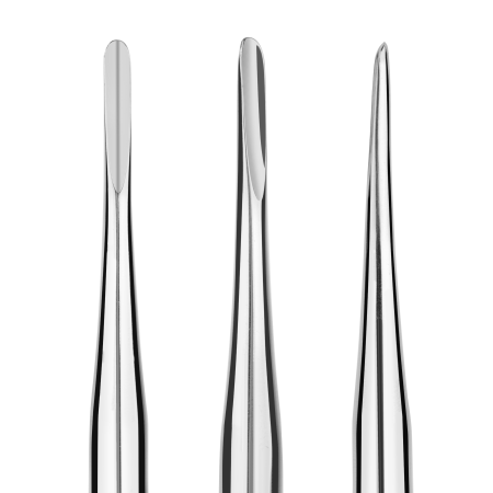 - Поверхность инструментов отполирована до зеркального блеска, а рукоятки имеют матовое нанесения - для избегания соскальзывания и неэстетичных следов.