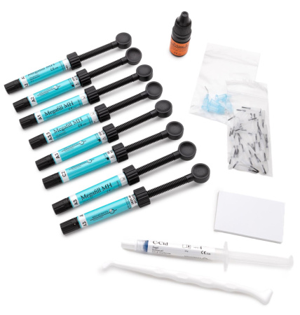 Megafill MH - это светоотверждаемый универсальный микрогибридный композит для реставраций в передних и боковых областях. - C-Cid, принадлежностиБлагодаря неизменно пластичной консистенции и большому выбору цветов, материал обладает превосходными технологическими свойствами и очень хорошо подходит для классической реставрационной терапии и техники наслоения для наращивания пломб. Megafill MH можно отполировать до зеркального блеска и, таким образом, получить высокоэстетичную реставрацию.