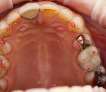 Окклюзионная бумага толщиной 40μ особенно хорошо подходит для двухцветной демонстрации статической и динамической окклюзии. Для этого на первом этапе окрашиваются в красный цвет все контактные пункты в положении центральной окклюзии, а затем проводится второй этап с окраской динамических контактных пунктов в синий цвет. Использование синей бумаги на первом этапе и красной бумаги на втором этапе также даёт хорошие результаты.