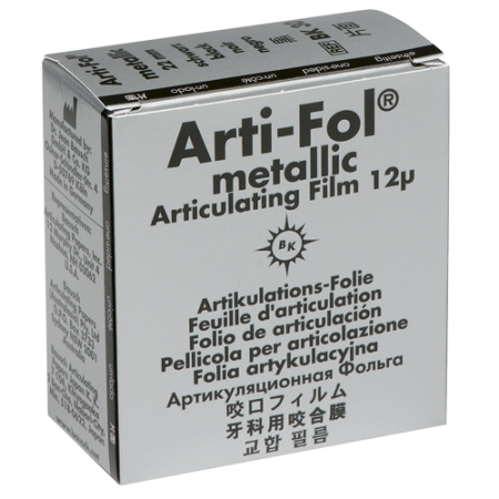Arti-Fol® metallic“ толщиной 12μ является специальной проверочной фольгой с существенно улучшенными качествами. Эта проверочная фольга состоит из металлизированной полиэфирной фольги („Shimstock“–фольга) толщиной только 12μ. Сочетание цветового покрытия нового состава и металлизированной фольги создаёт решающие преимущества при определённых видах применения. Фольга отличается очень хорошей красящей способностью. Особенно четко видны контактные пункты на керамических и гладкополированных металлических поверхностях. Использование металлизированной фольги позволяет в значительной степени редуцировать проблему статических электрических сил.