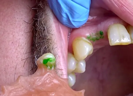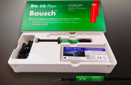 Bio-Ink®-Flow применяется для маркировки точек, поверхностей и линий на слизистой оболочке полости рта, например, точки давления, А-линия, связки слизистой, расположение складок и края протеза. На важные места Bio-Ink®-Flow наносится на предварительно высушенную слизистую оболочку.