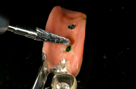 При применении высушенного протеза краска, нанесенная на точку давления протеза, переносится на внутреннюю поверхность протеза , который затем можно подкорректировать.